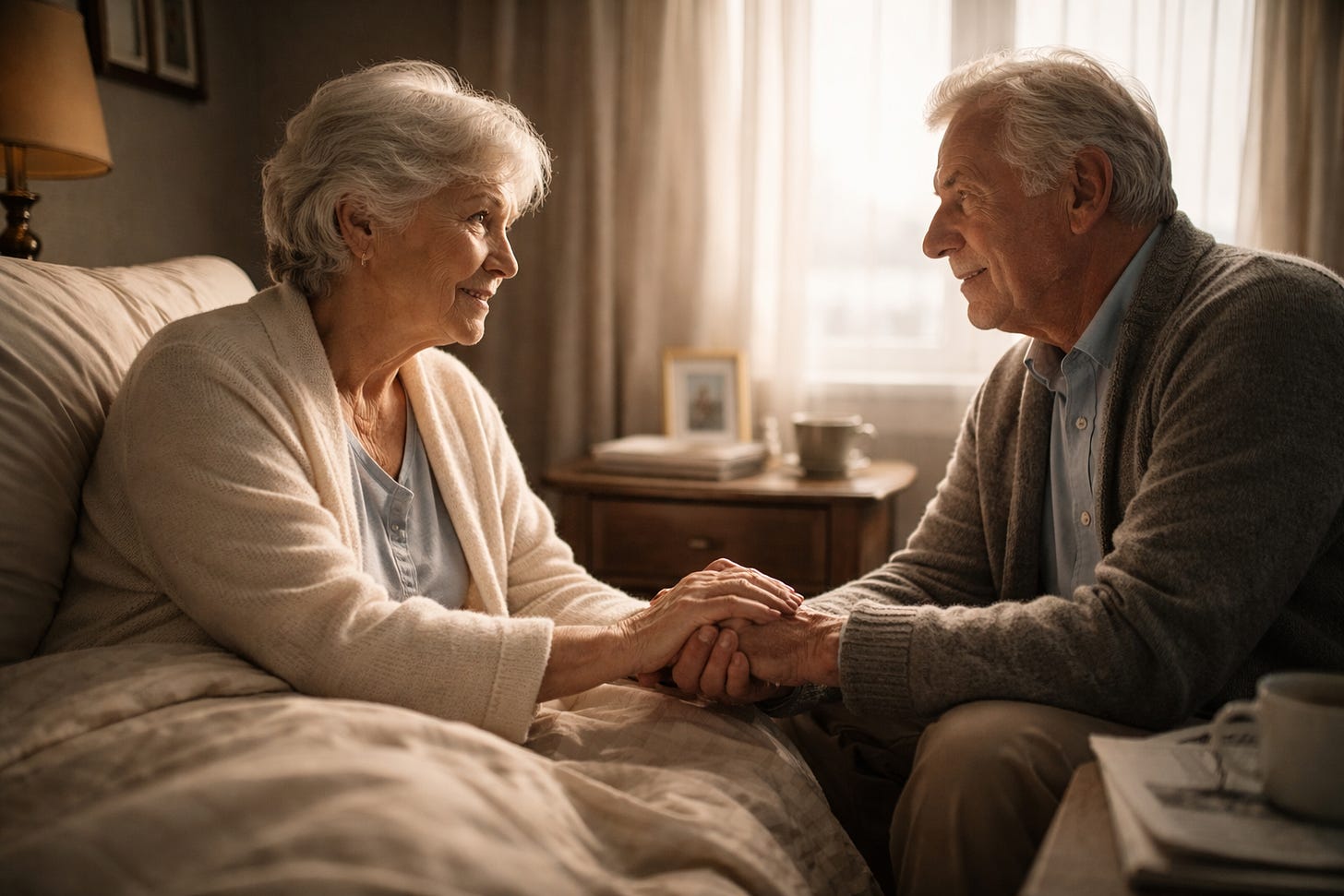 He tells her the approved facts. Forty-two years married. Two daughters—Clara in Portland, Jen in Baltimore. A lake house they sold before it became too much to manage. A fall last winter. A neurologist with careful eyes and a vocabulary full of fog.